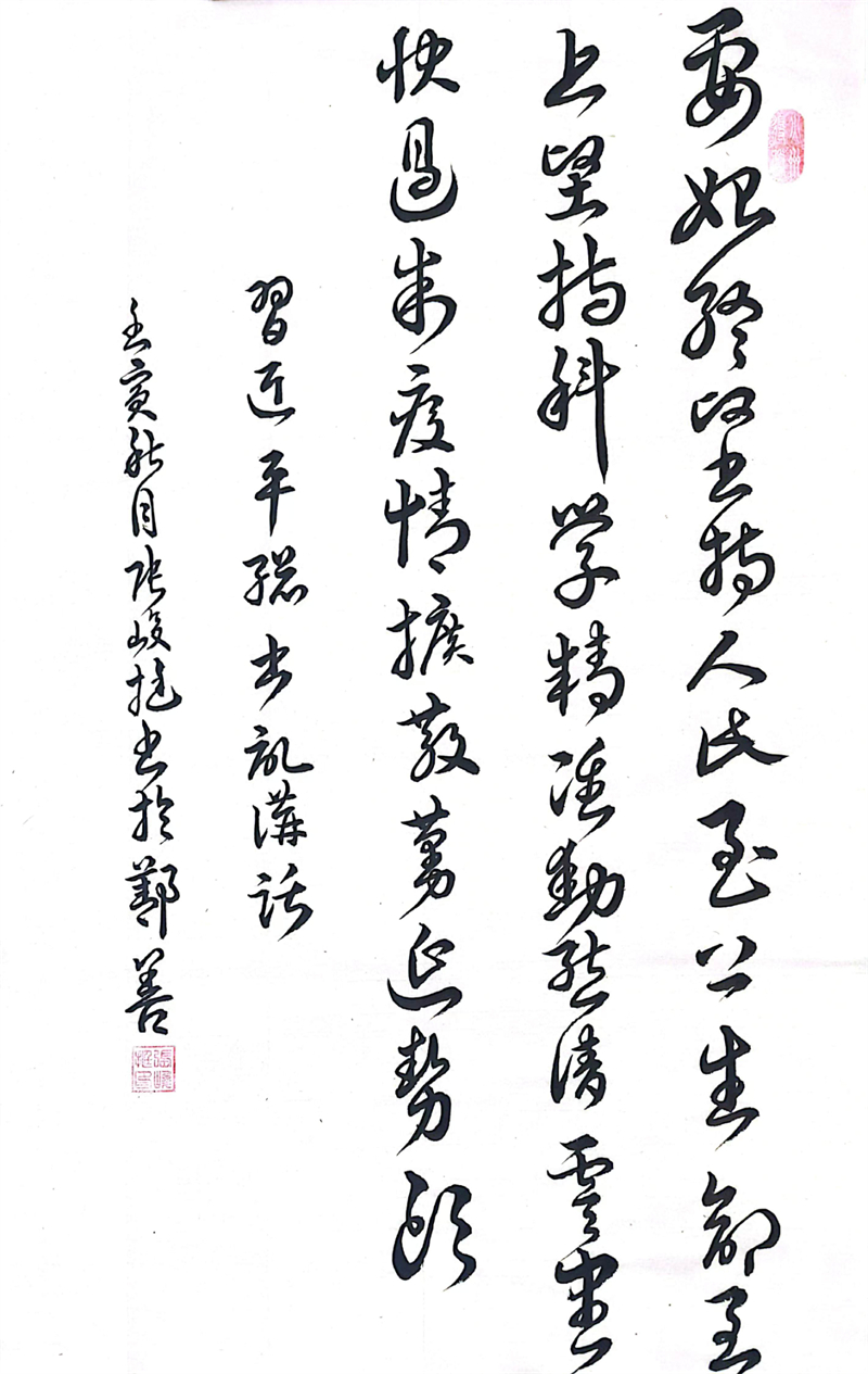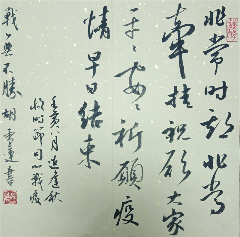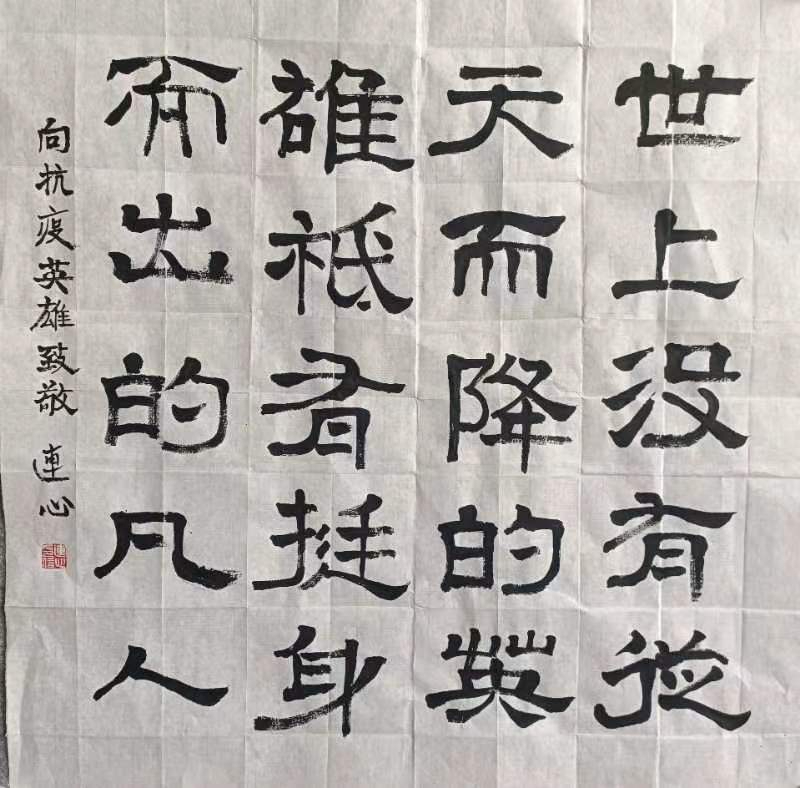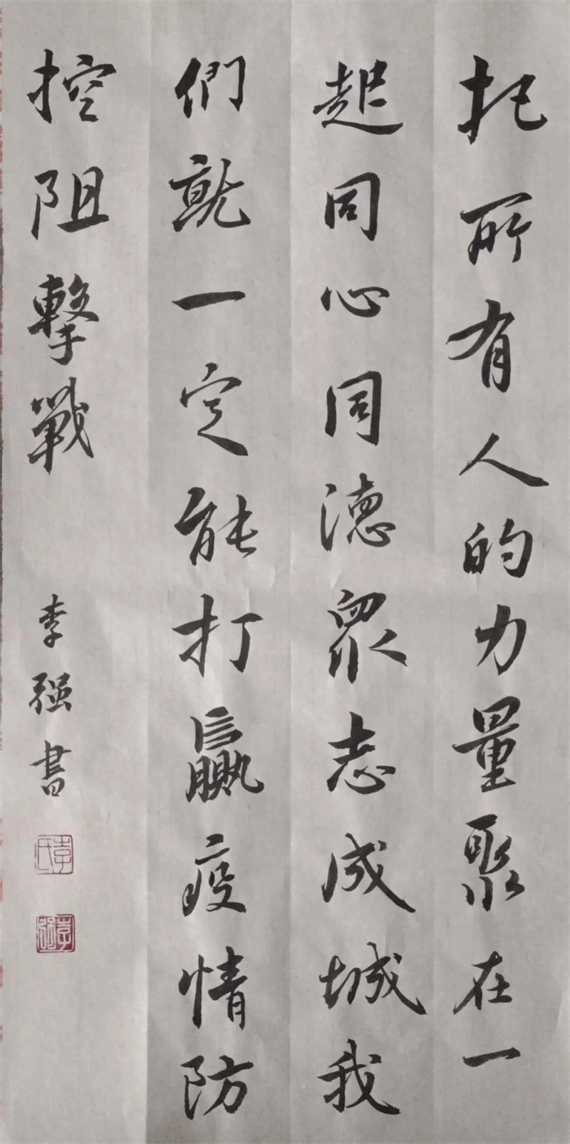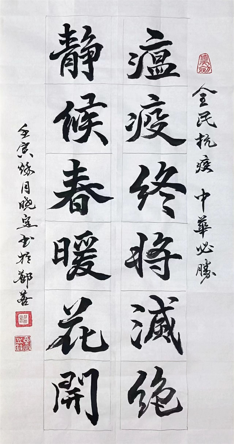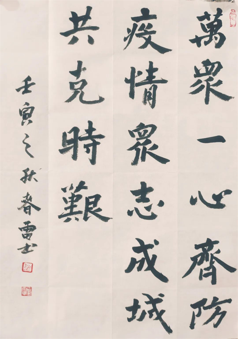 为贯彻落实自治区防疫工作的重要指示精神和决策部署,用主题文艺作品宣传防疫政策,鼓舞抗疫斗志,汇聚万众一心抗疫强大精神力量,鄯善县书法家协会书法艺术工作者积极响应号召,充分发挥文艺作品凝聚人心、鼓舞士气的作用,以书法的形式赞美逆行勇士,讴歌先进典型,讲好抗疫故事。书法艺术工作者以“艺”传递社会正能量,激情创作、寄托深情,为抗疫英雄而歌,用作品感召力昂扬抗疫精神,鼓舞士气、传递真情,为打赢这场疫情防控阻击战作出自己的努力,加油!