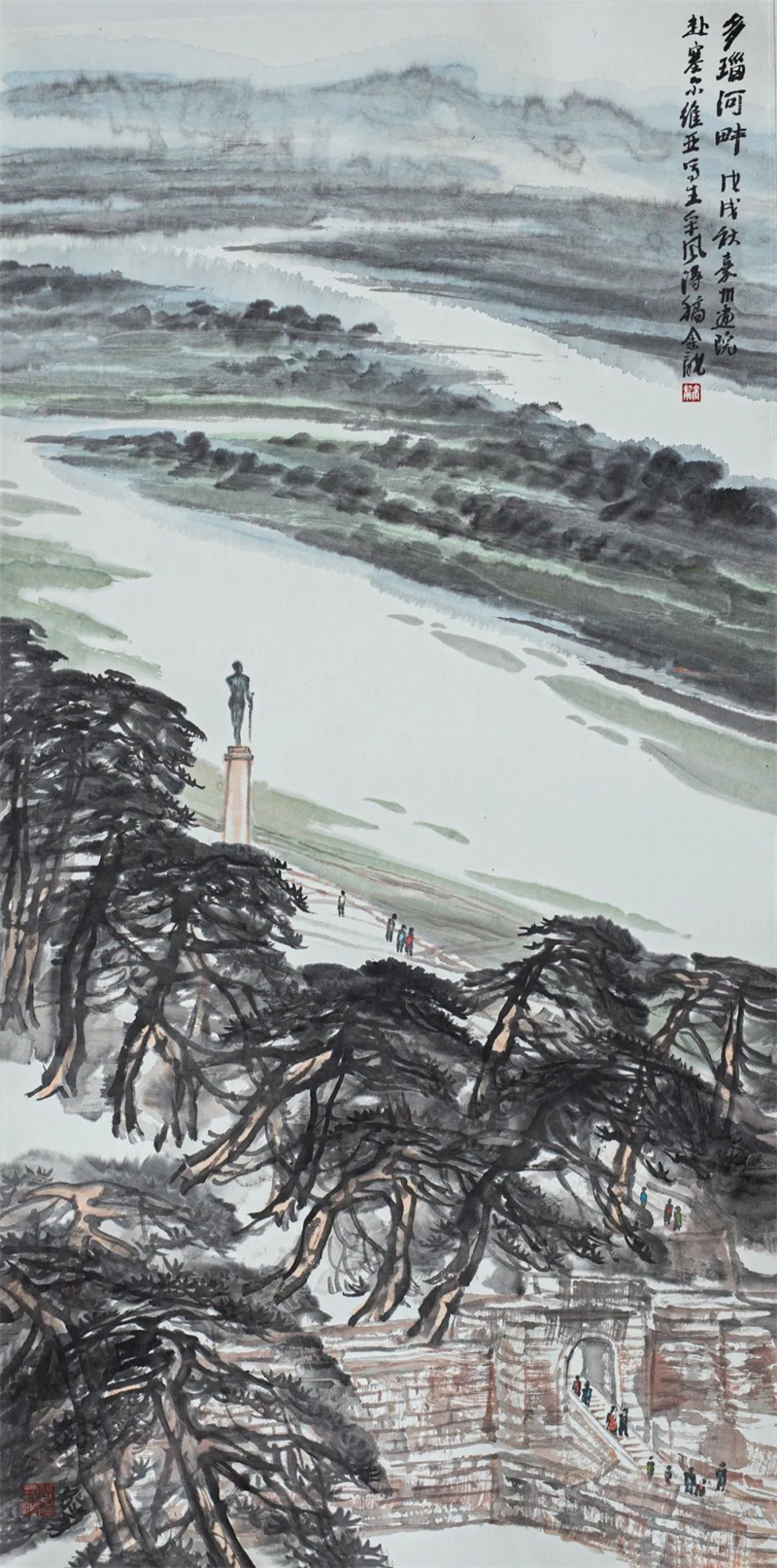 余龙 《多瑙河畔》中国画 136cm×68cm