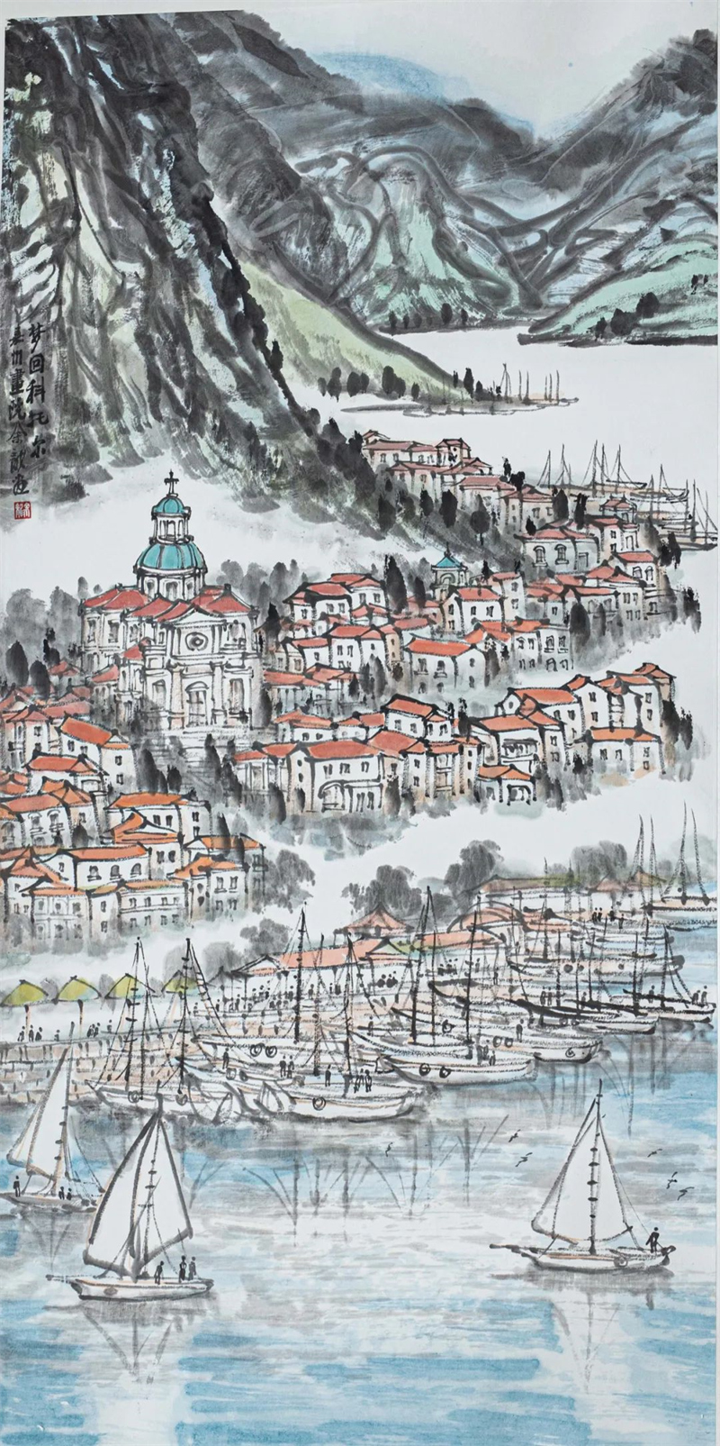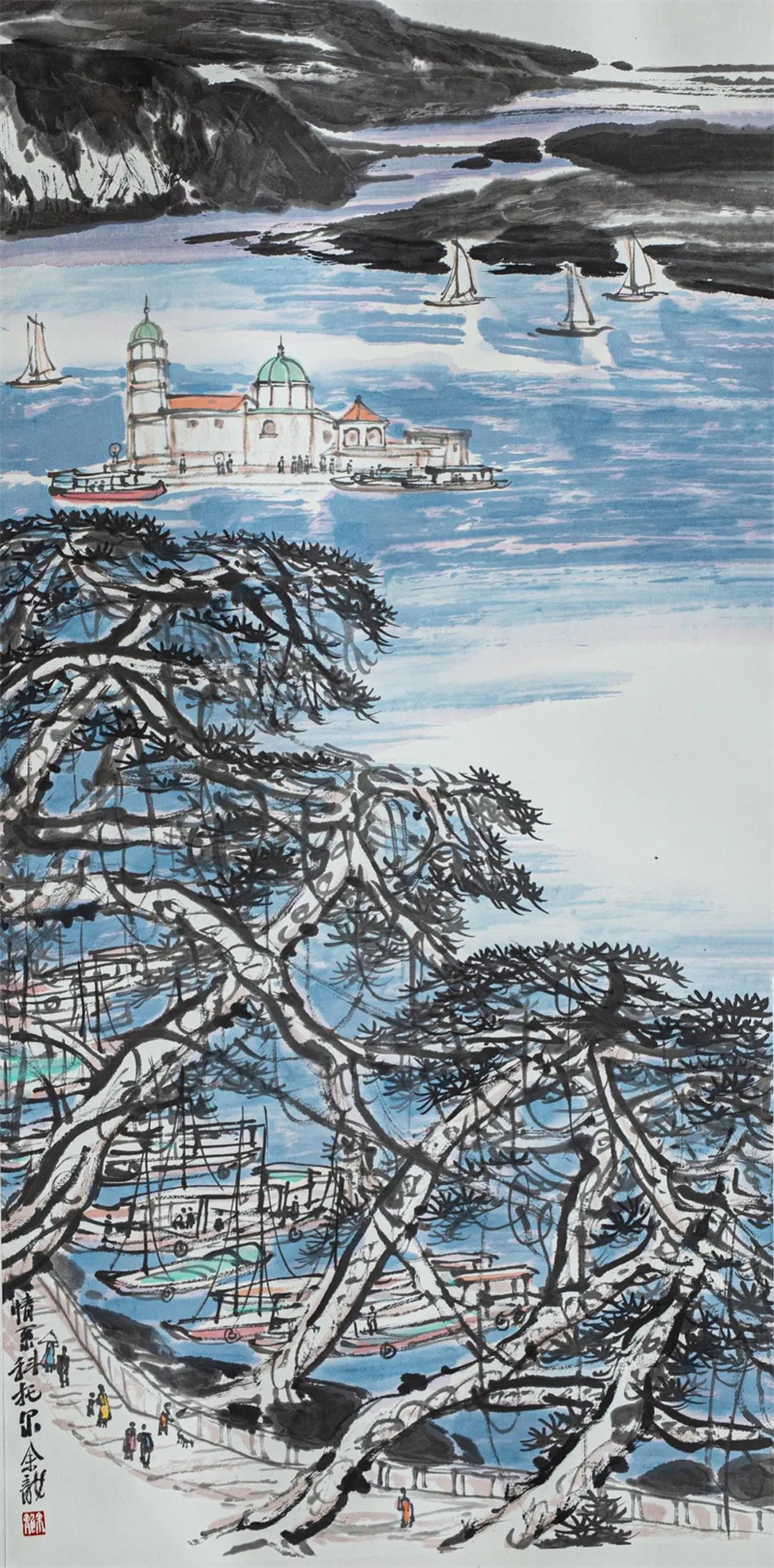余龙 《情系科托尔》中国画 136cm×68cm