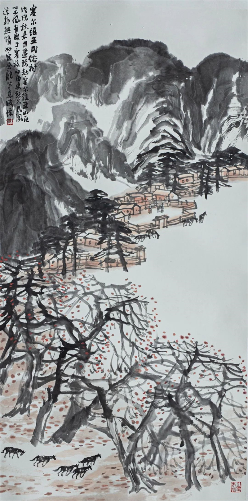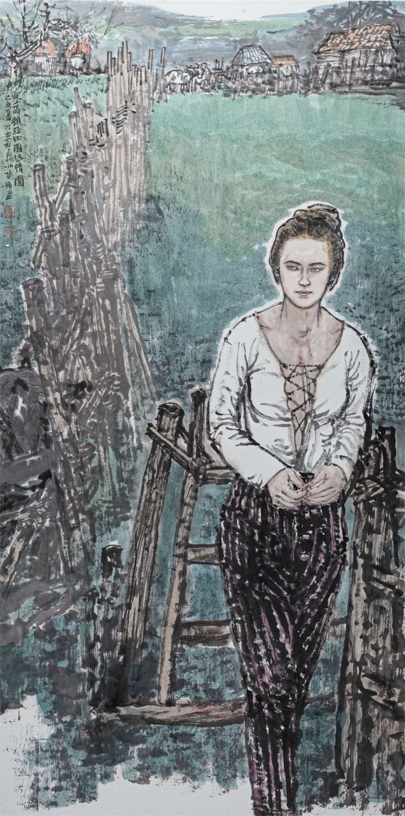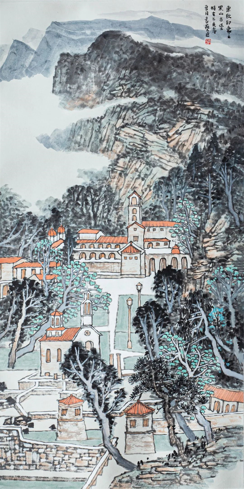 余龙 《塞尔维亚民俗村》中国画 136cm×68cm
