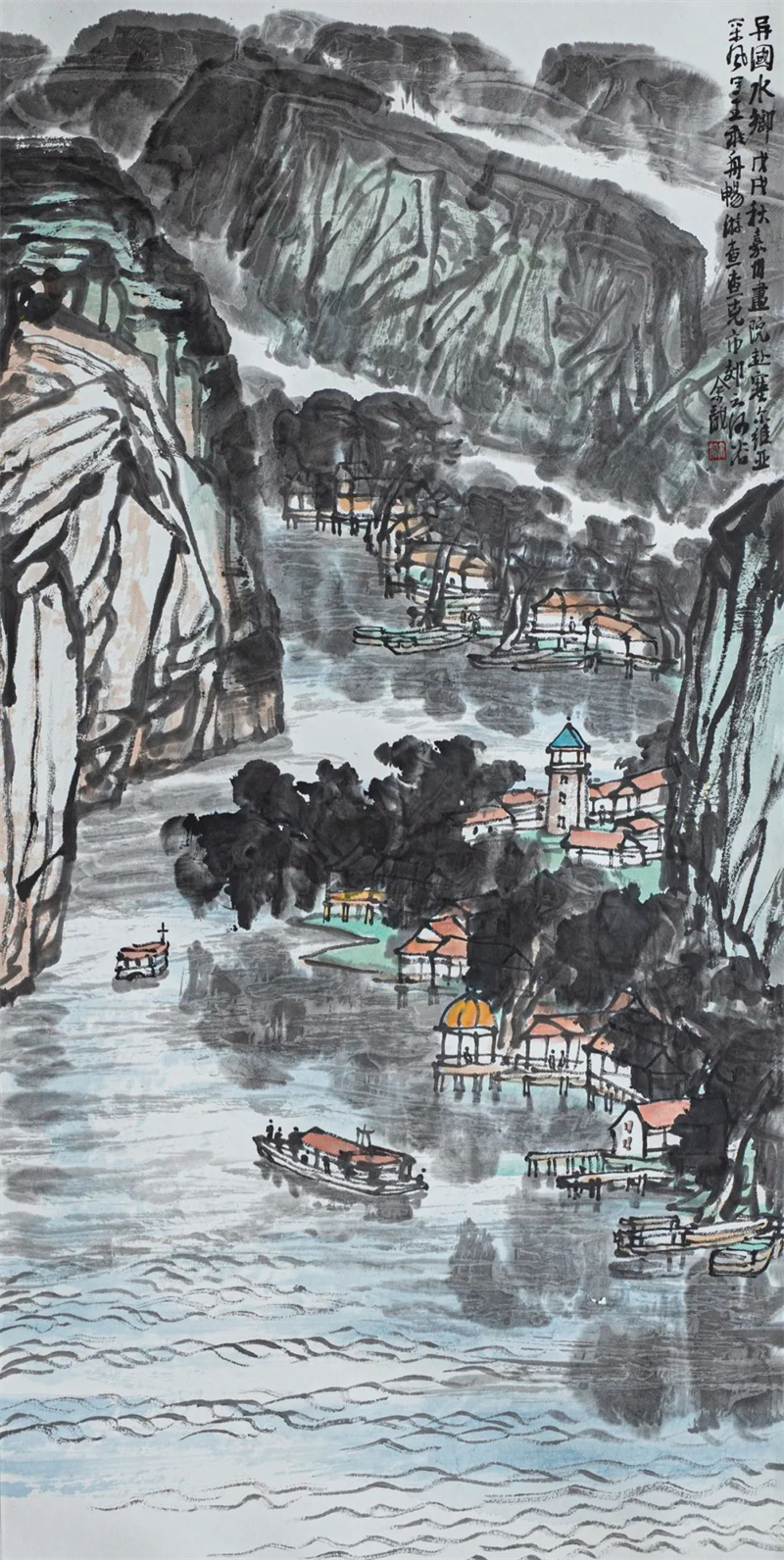 余龙 《异国水乡》中国画 136cm×68cm