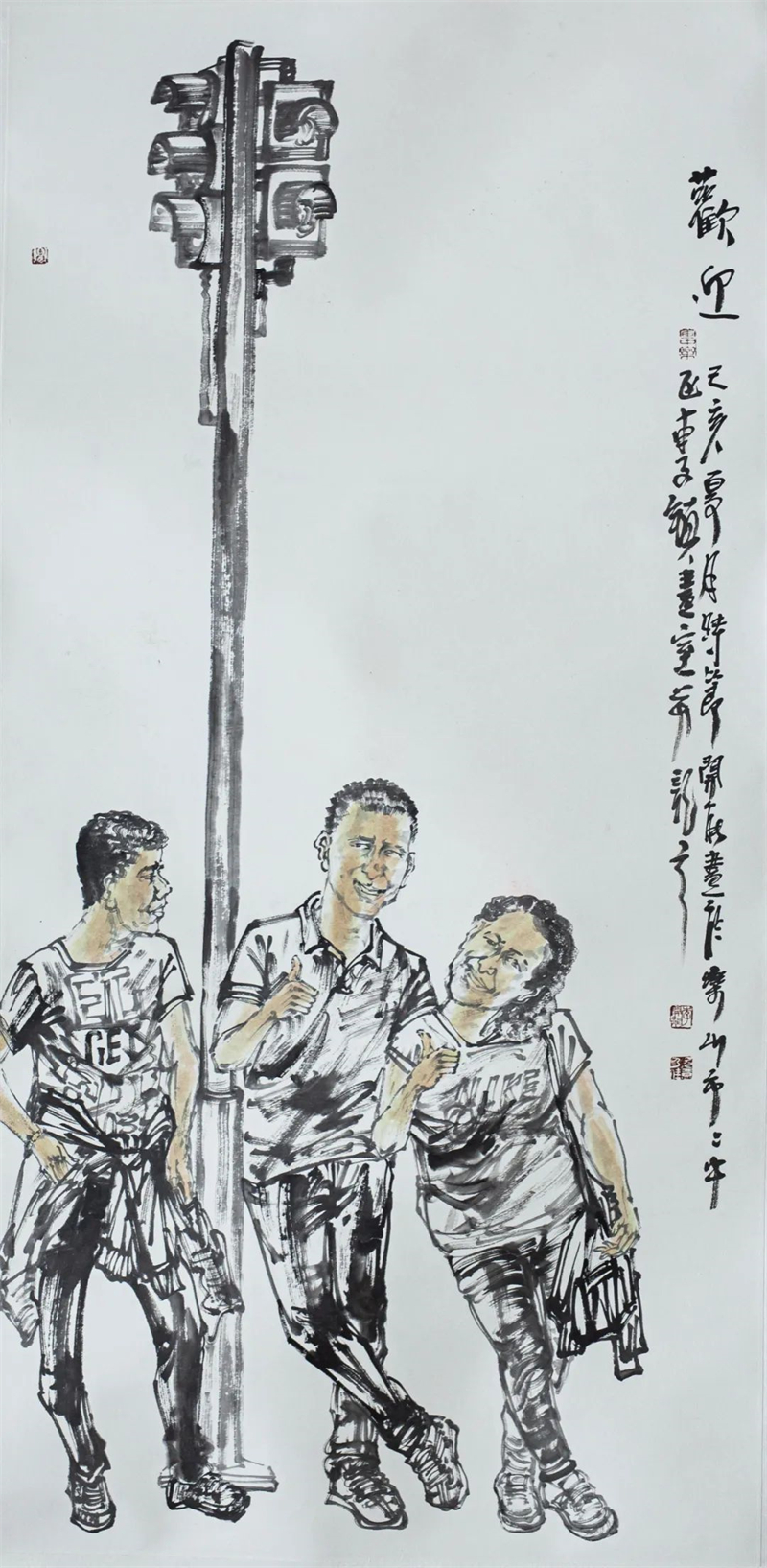 李开能 《欢迎》中国画 136cm×68cm
