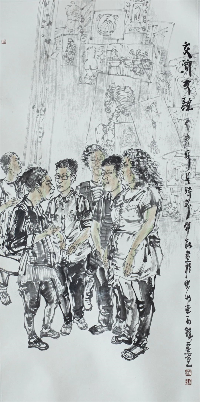 李开能 《交流友谊》中国画 136cm×68cm