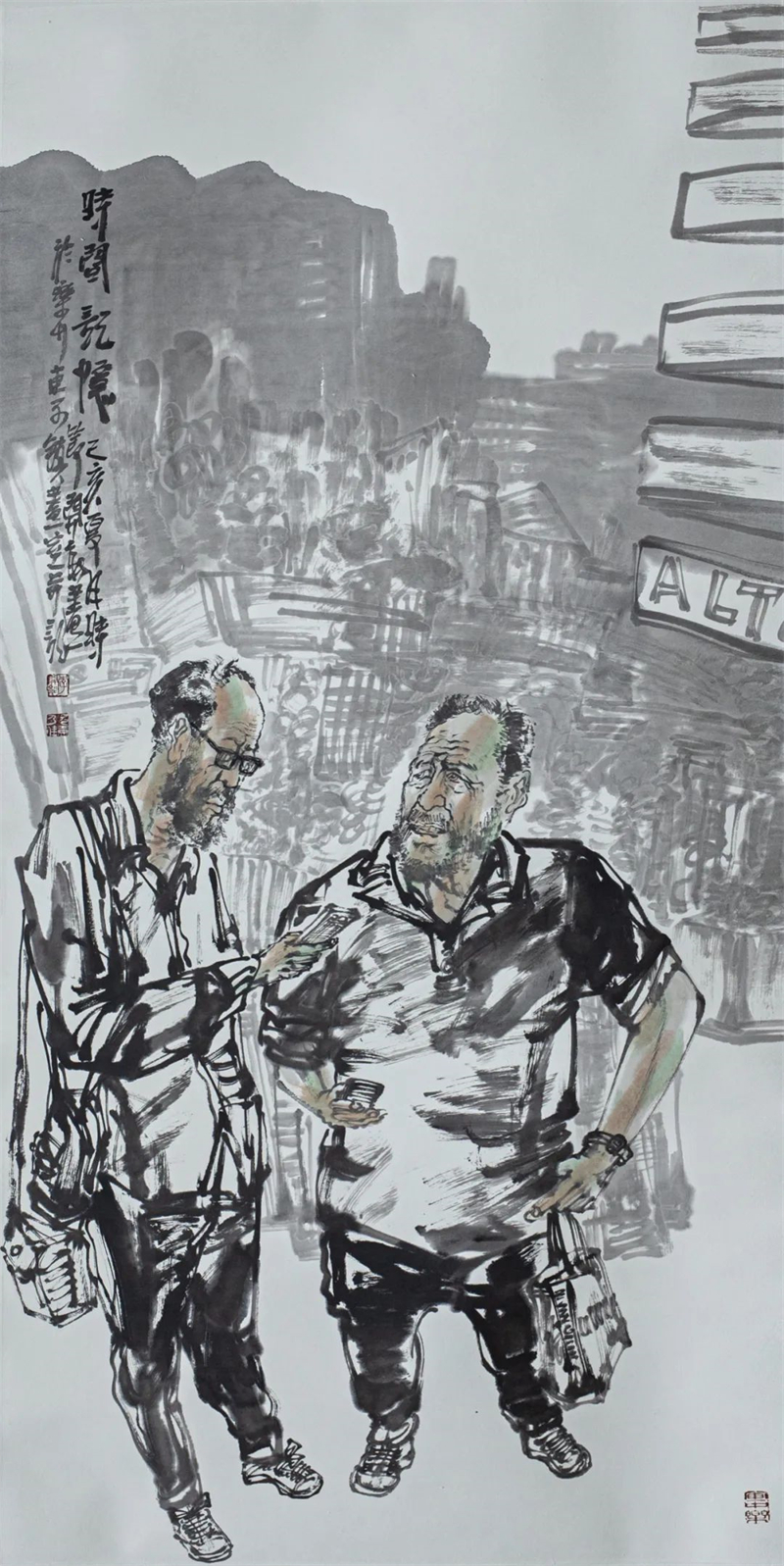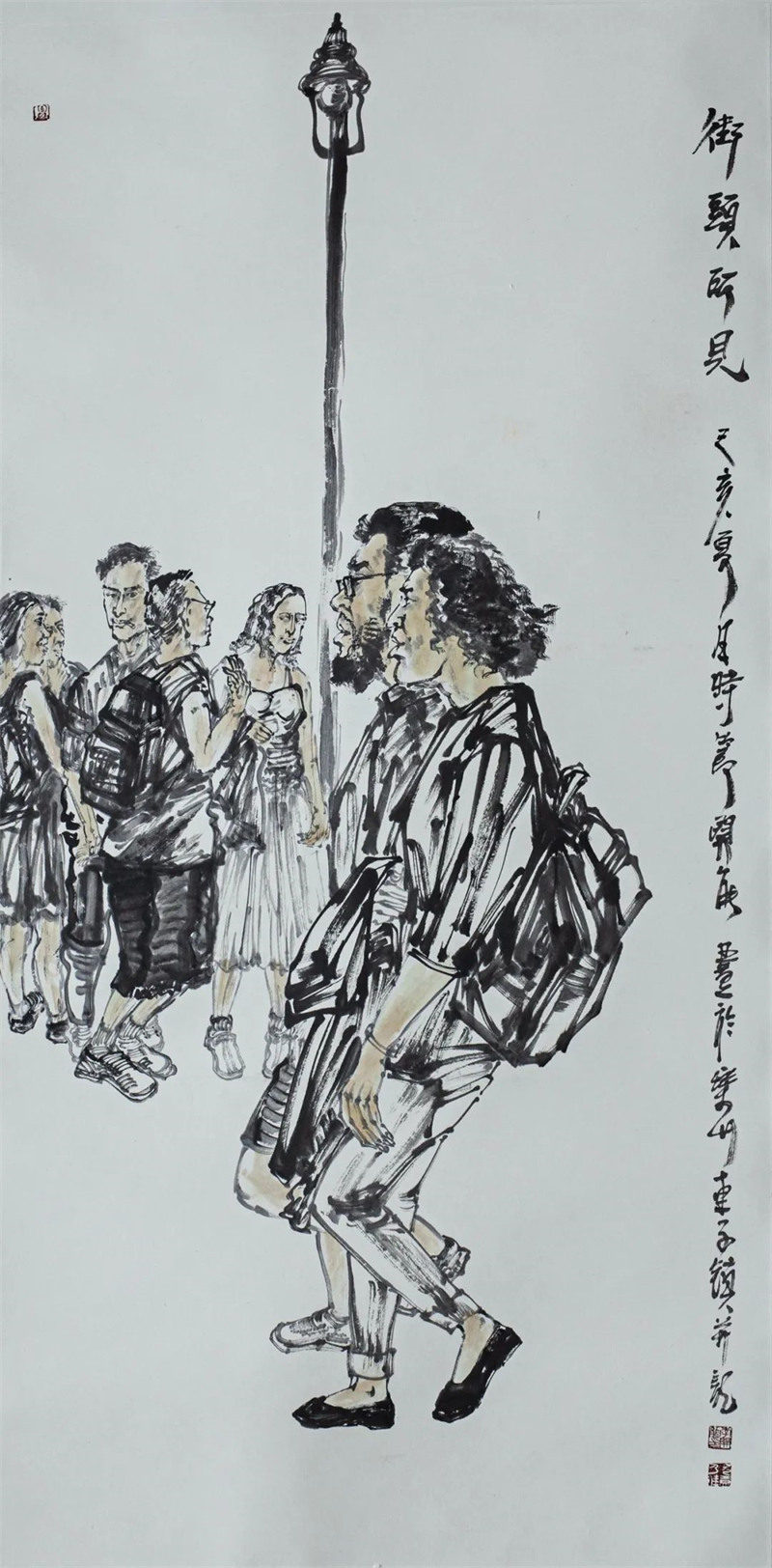 李开能 《街头所见》中国画 136cm×68cm