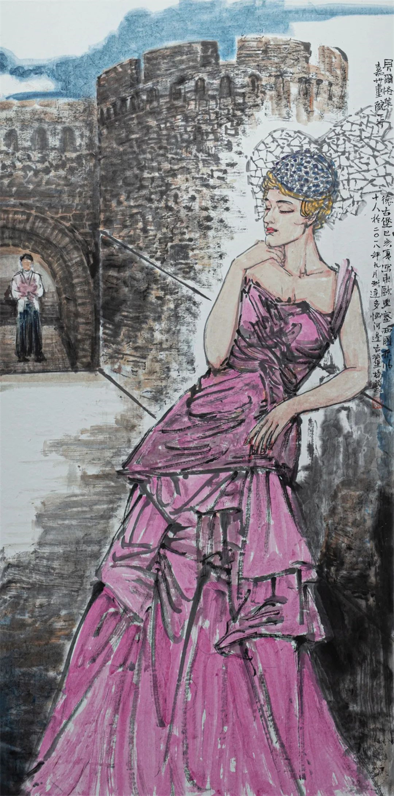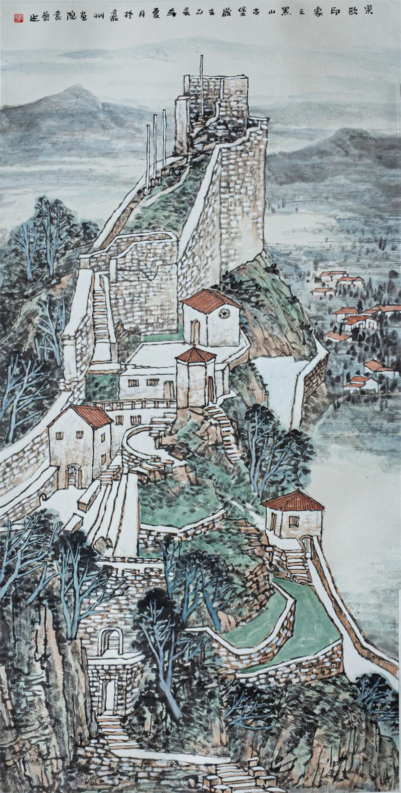 杨循 《贝尔格莱德古堡》中国画 136cm×68cm