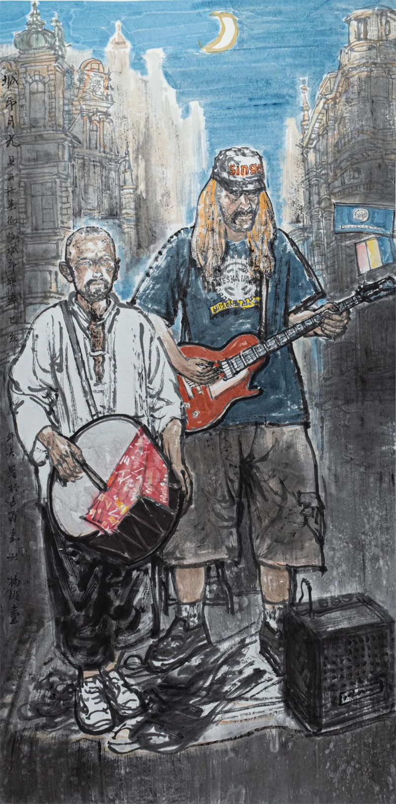 杨循 《城市月光》中国画 136cm×68cm