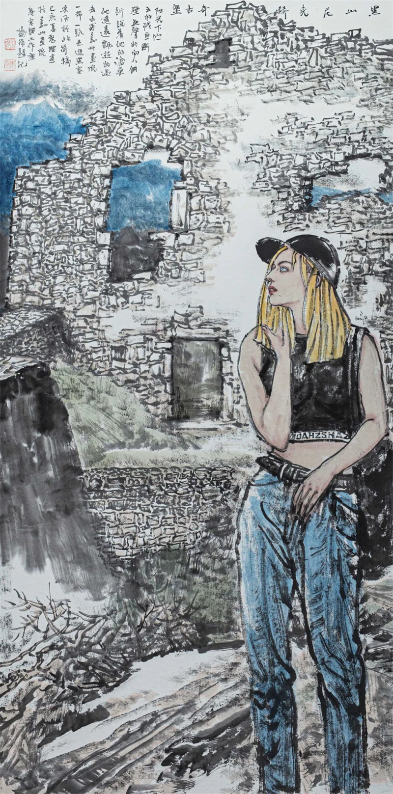 袁艺 《东欧印象一》中国画 136cm×68cm