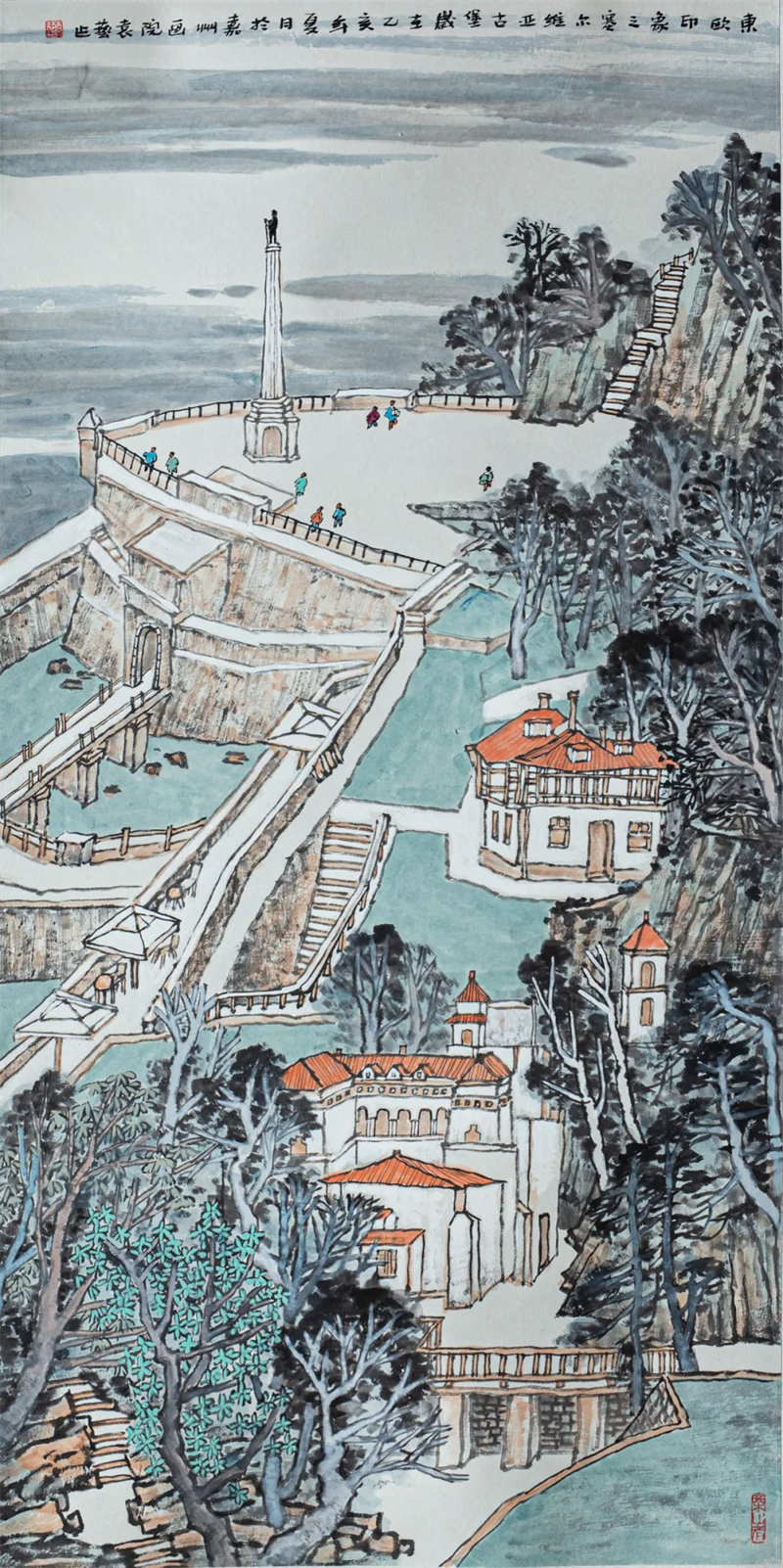 杨循 《塞尔维亚首都博物馆》中国画 136cm×68cm