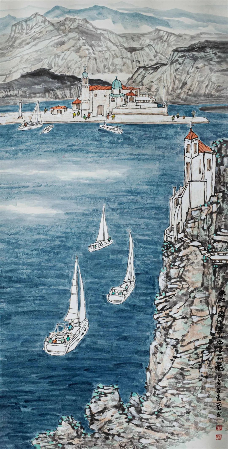 杨循 《亚德里亚海湾》中国画 136cm×68cm