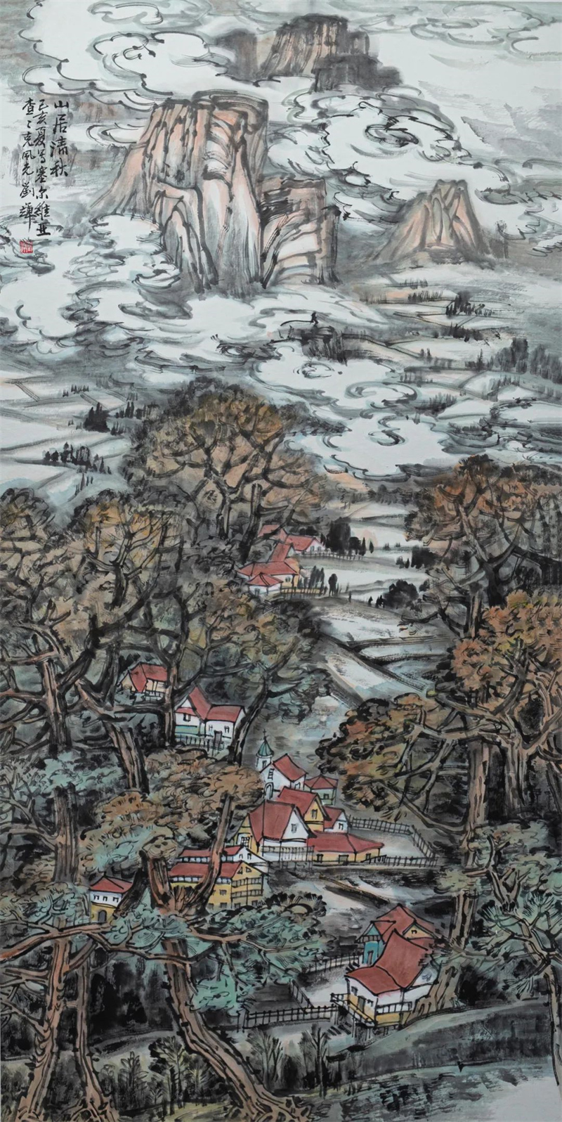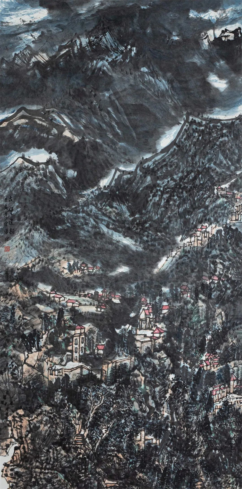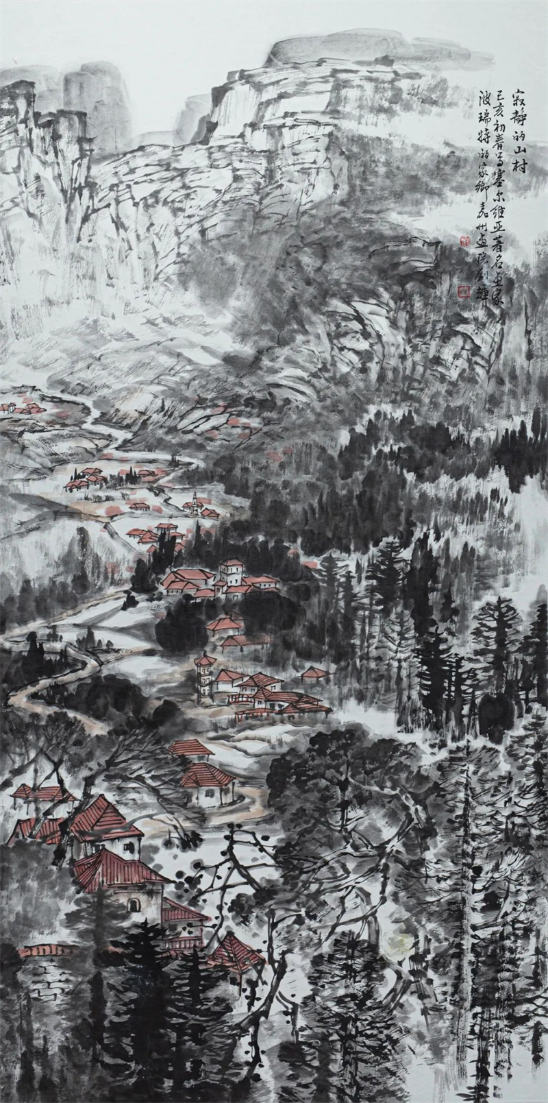 刘辉 《寂静的山村》中国画 136cm×68cm