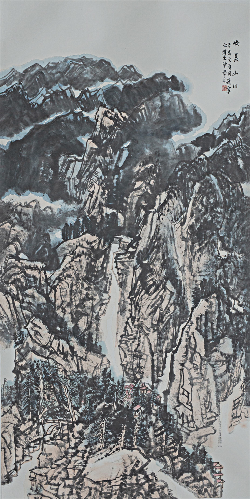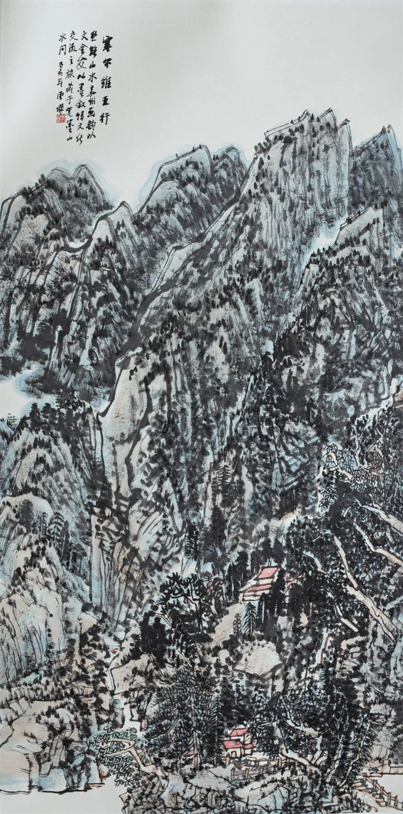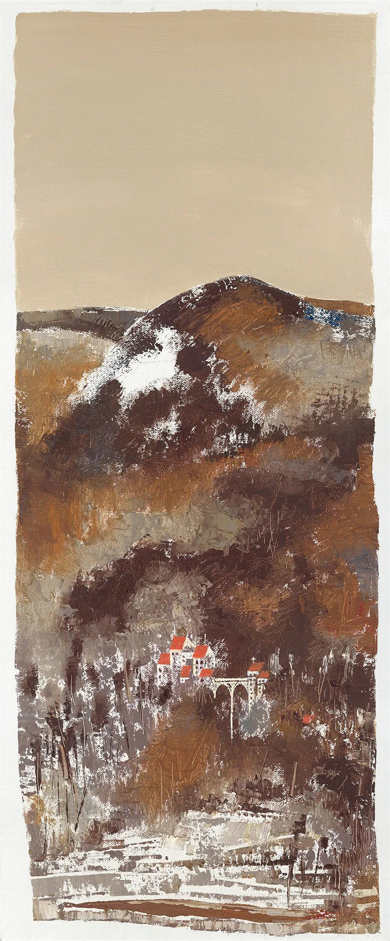 刘辉 《寂静的山村》中国画 136cm×68cm