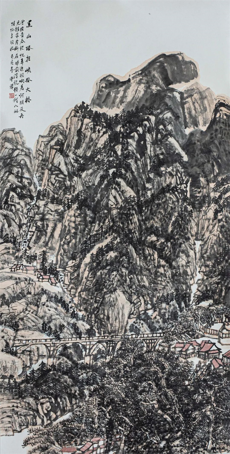 曾杰 《黑山塔拉峡谷大桥》中国画 136cm×68cm