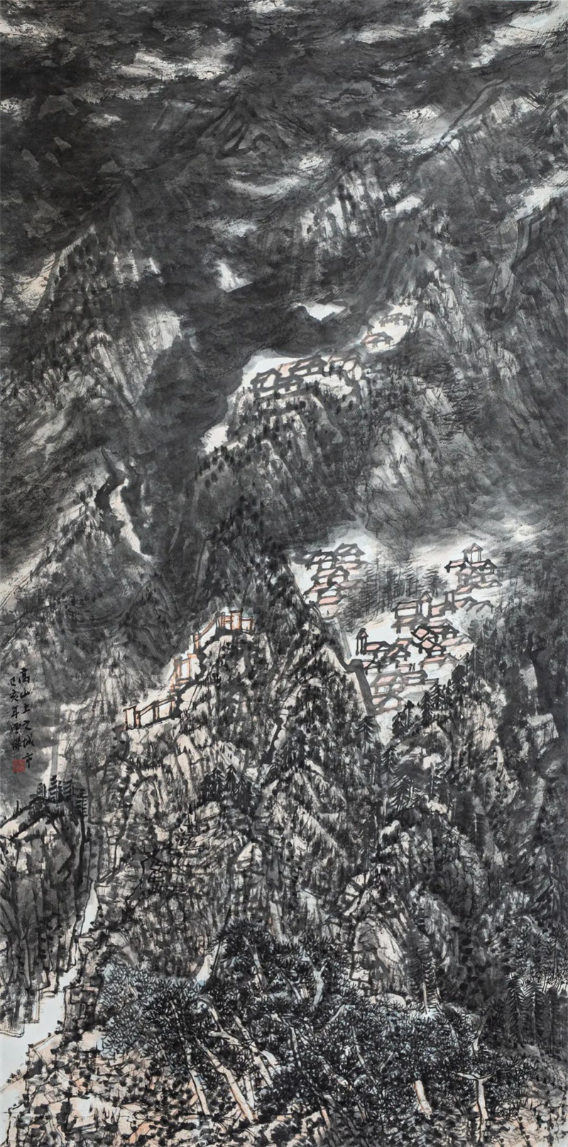 曾杰 《高山上之城市》中国画 136cm×68cm