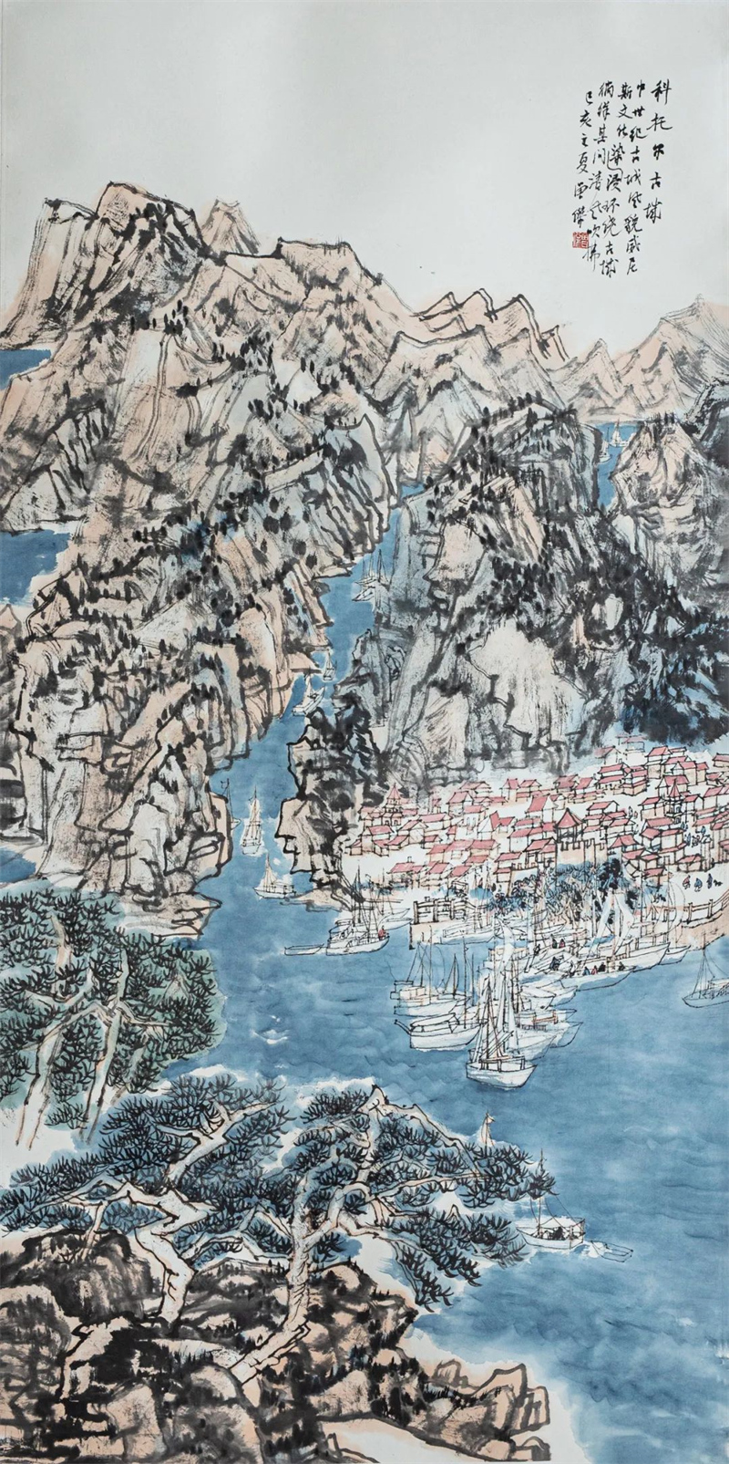 刘辉 《海湾明珠》中国画 136cm×68cm