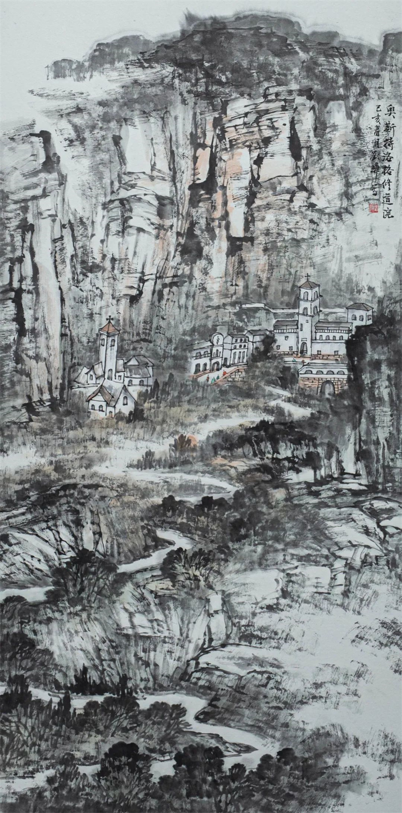 刘辉 《奥斯特洛格修道院》中国画 136cm×68cm