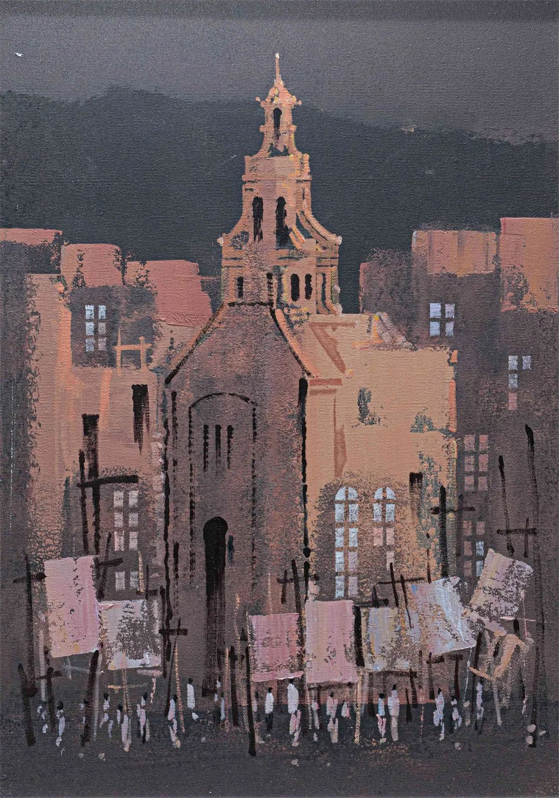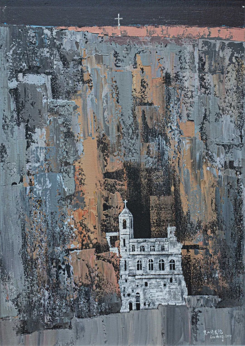 刘辉 《圣女教堂》中国画 136cm×68cm