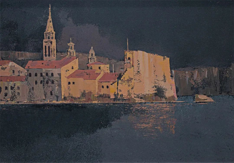 刘栋 《科托尔黄昏》油画 60cm×85cm