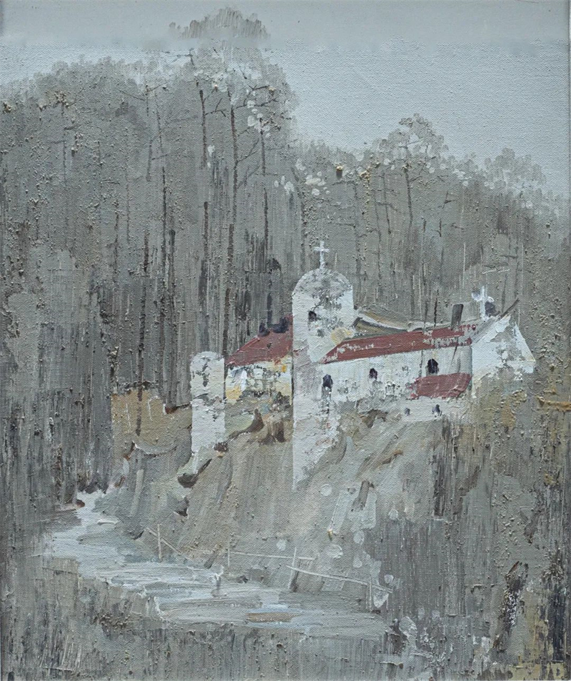 刘栋 《松林间的小教堂》油画 60cm×50cm