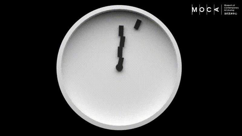 “时钟”:艺术家从现象学的角度探讨时间干事的问题,探讨用时间作为媒介的不同方式。时间被分裂、拉伸活收缩,从而揭示了其延展的能力。“时间”的含义在这里采用了柏格森意义上的持续时间。社会时间是一种幻觉,它超出环境和现象学感知,时间不能停止,只能经历。作品通过骚动秒针分裂成多少块,就有多少秒,从序列开始,时间越过越多,似乎越过越快,即秒针的节奏。