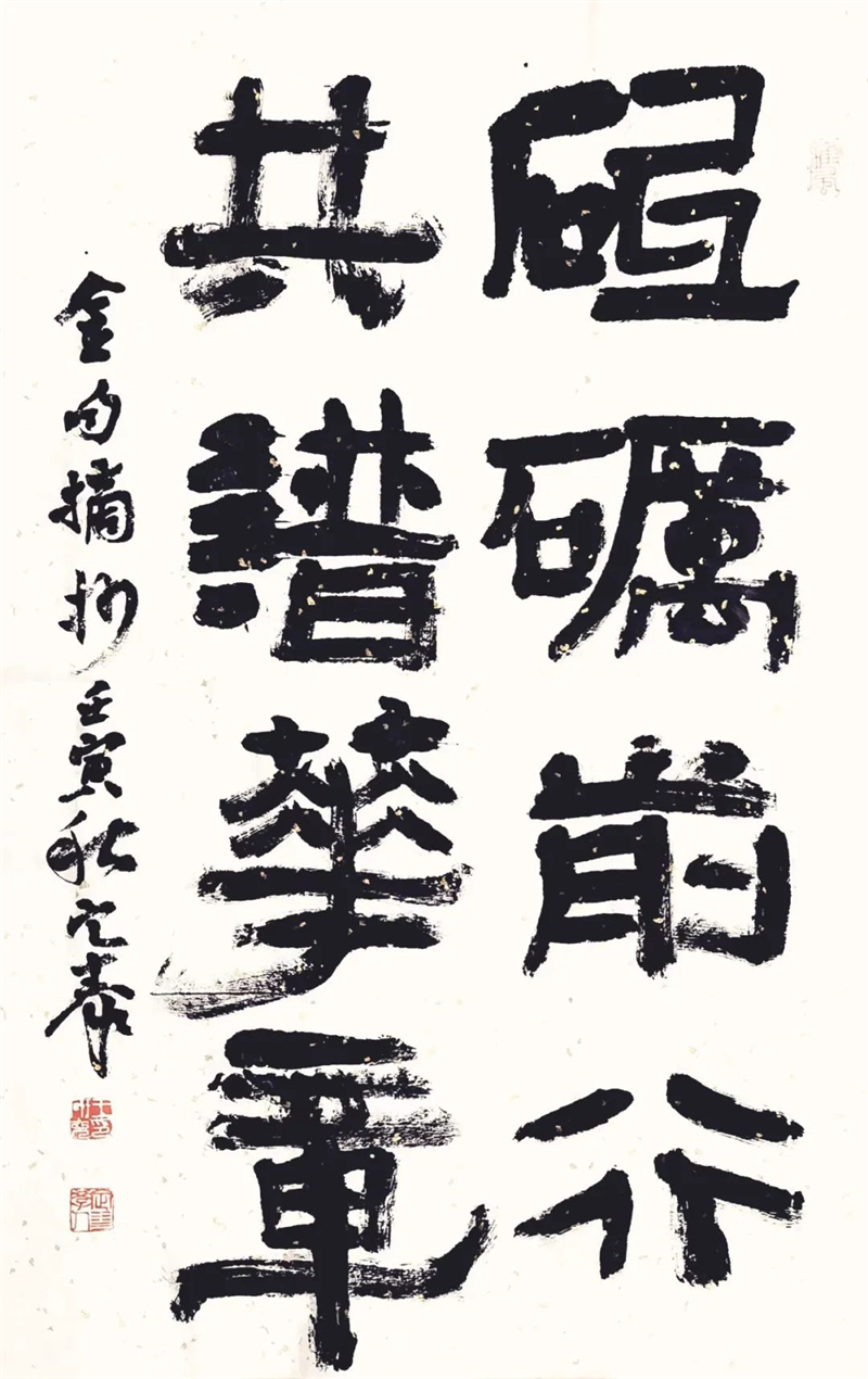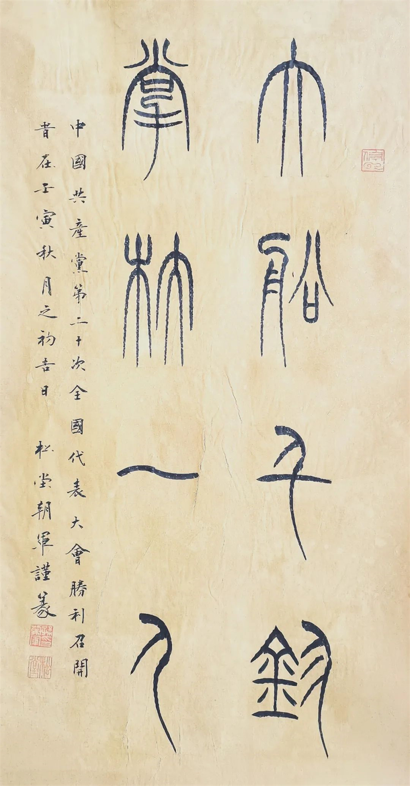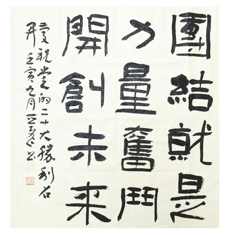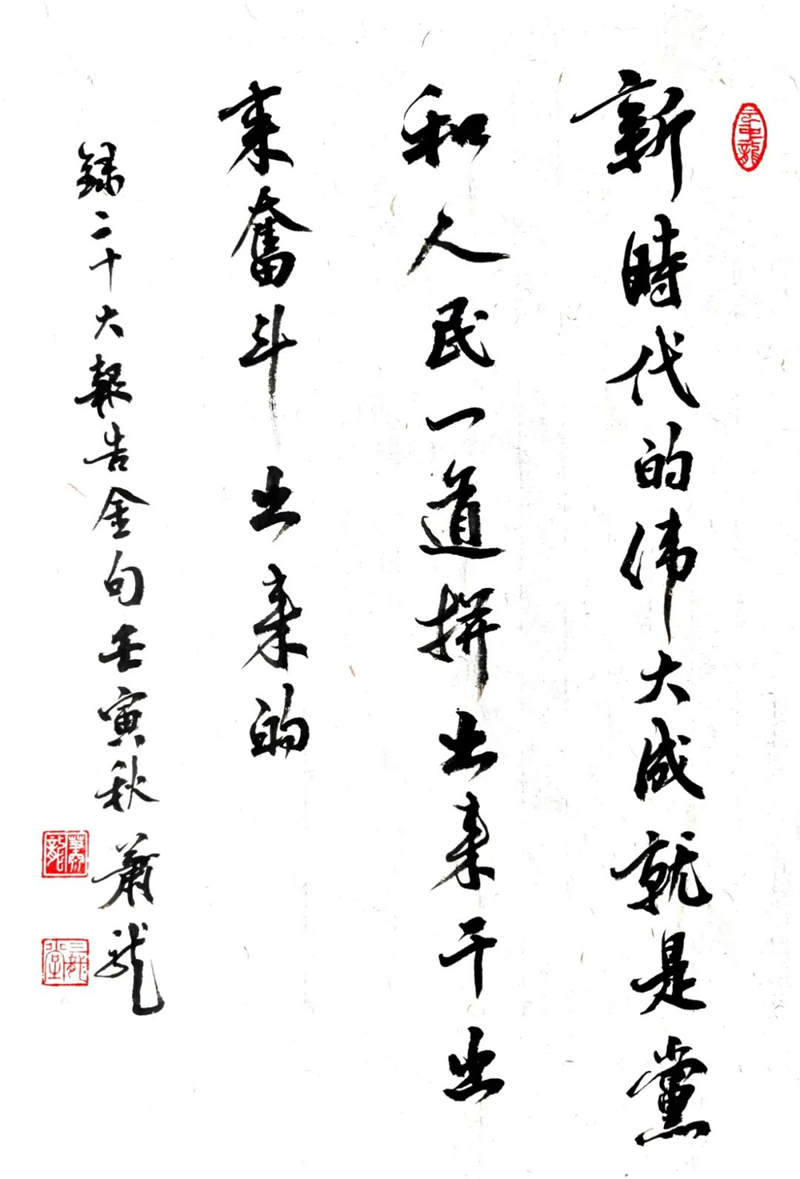 作品释文:新时代十年的伟大变革,在党史、新中国史、改革开放史、社会主义发展史、中华民族发展史上具有里程碑意义。