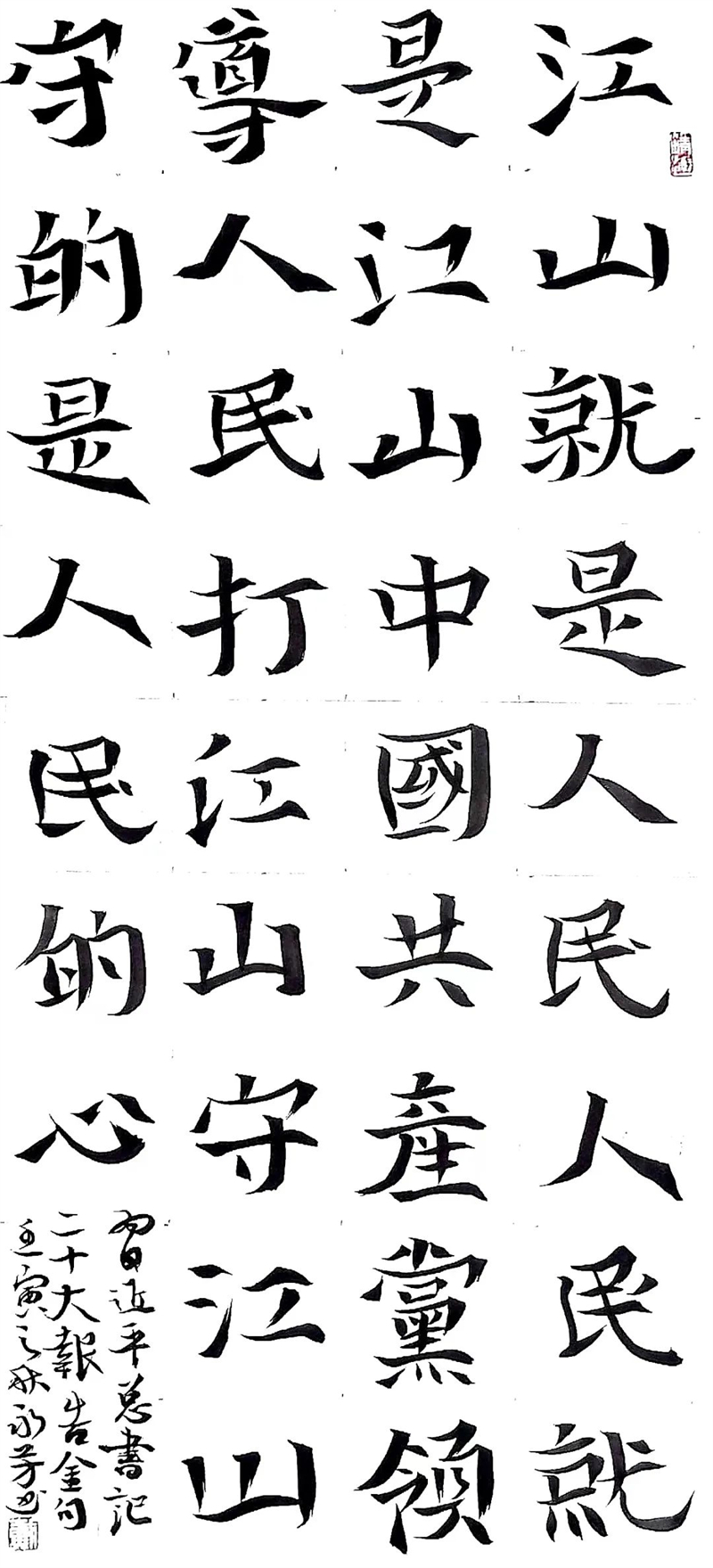 作品释文:江山就是人民,人民就是江山。中国共产党领导人民打江山、守江山,守的是人民的心。