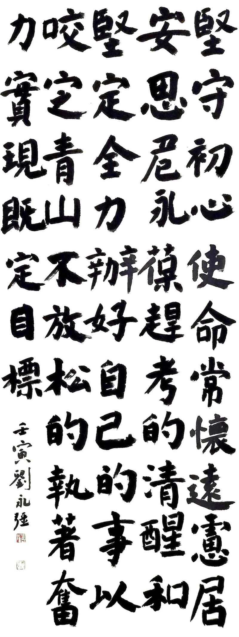 作品释文:坚守初心使命,常怀远虑、居安思危,永葆“赶考”的清醒和坚定,全力办好自己的事,以咬定青山不放松的执着奋力实现既定目标。
