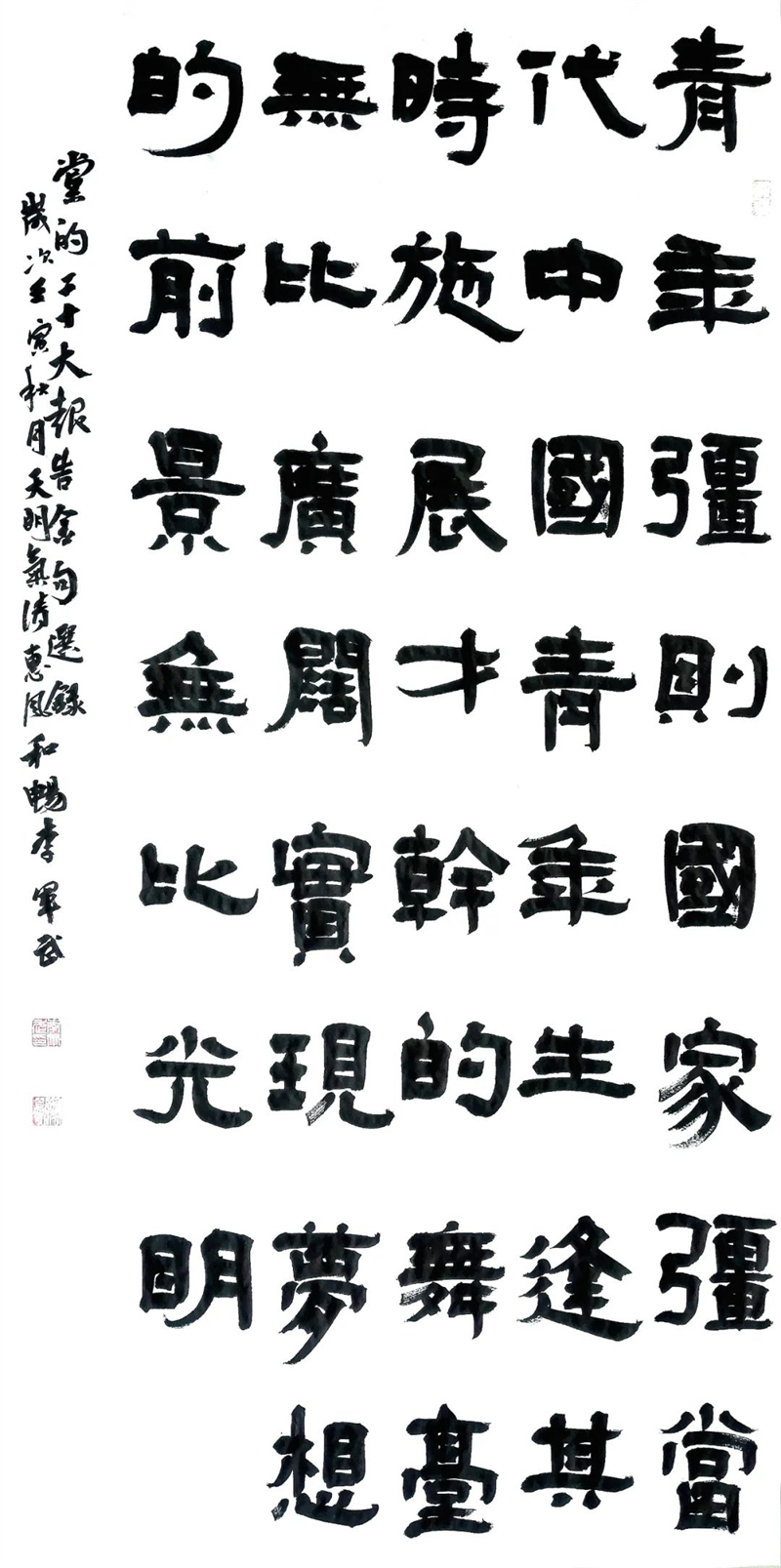 作品释文:青年强,则国家强。当代中国青年生逢其时,施展才干的舞台无比广阔,实现梦想的前景无比光明。