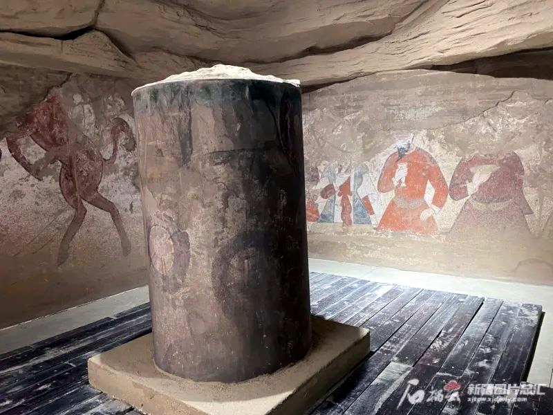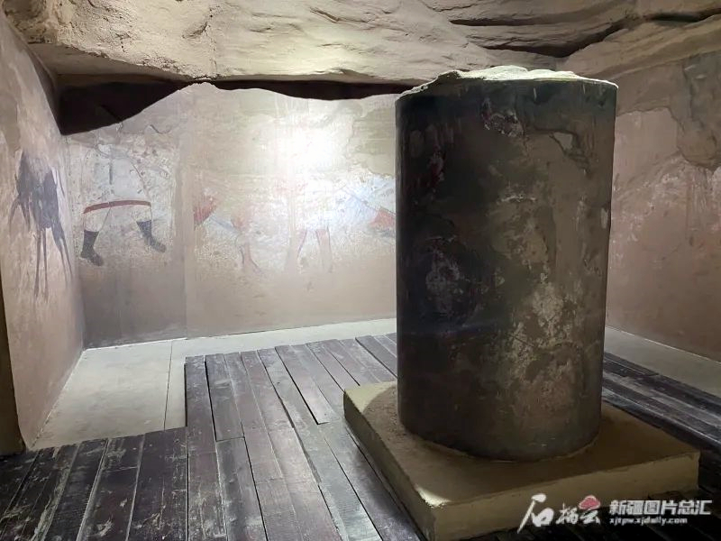 若羌县楼兰博物馆等比例复制的楼兰壁画墓,墓室东壁最重要部分是宴饮图,北壁是斗马图。石榴云/新疆日报记者 赵梅 摄