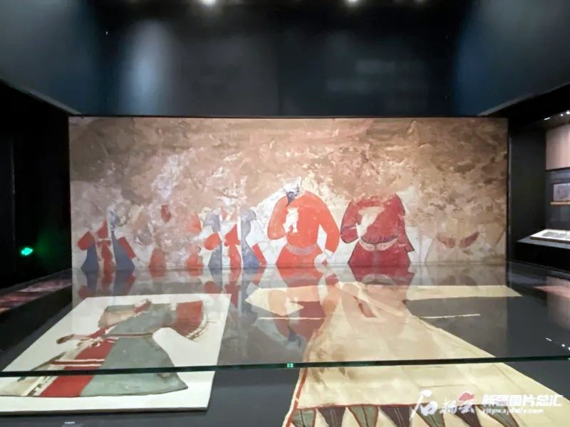 新疆博物馆二期魏晋南北朝展厅陈列的楼兰壁画墓内容。石榴云/新疆日报记者 赵梅 摄