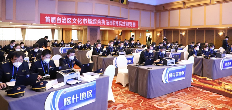 12月21日-23日,首届自治区文化市场综合执法岗位练兵技能竞赛暨第三届全国文化市场综合执法岗位练兵技能竞赛新疆选拔赛在乌鲁木齐举行,来自全疆各地州市的14支代表队60余名选手参加了为期三天的比赛。