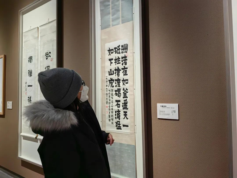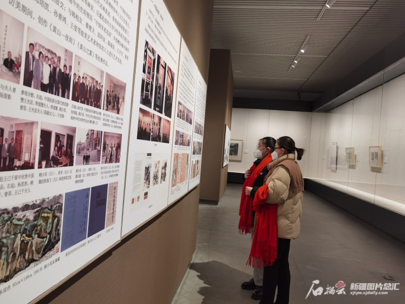 “走进西部——合肥市赖少其艺术馆精品项目(新疆)巡展”上,观众正在参观。石榴云/新疆日报记者刘萌萌摄