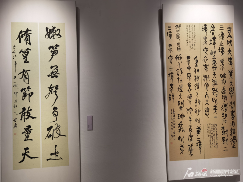 展出的部分书法作品。石榴云/新疆日报记者 刘萌萌摄