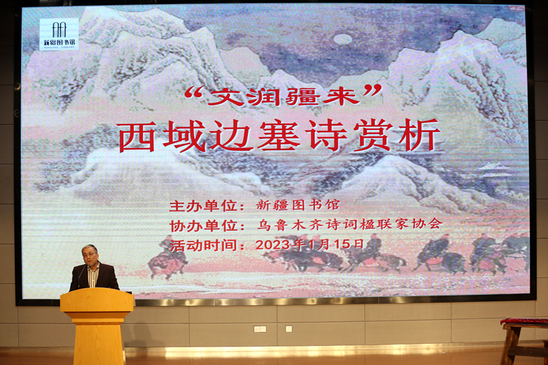1月15日,新疆图书馆举办了“文润疆来”系列阅读推广活动。活动以“西域边塞诗”为主题,邀请新疆诗词学会秘书长王彤老师,为读者们介绍了边塞诗的起源、发展、兴盛的发展历程,讲述了代表性诗人的经典作品,引领读者欣赏、体味西域边塞诗的意境和蕴意,对增进文化认同,建设中华民族共有精神家园,铸牢中华民族共同体意识具有重要意义。活动现场吟诵了八首精彩古诗词。用吟唱的方式演绎经典边塞诗,情感真挚、动人心弦,彷佛将人带到了千年前的边塞风光,感受到诗人们浓烈的爱国情怀。详实的古诗词赏析、动人的吟唱演绎、悠扬的古琴演奏,给读者们带来了精彩的文化盛宴。活动中,每到精彩之处,读者纷纷举起手机拍照录像,想要向家人朋友们分享。现场掌声现场的掌声此起彼伏,气氛轻松热烈,活动收到读者们的广泛好评。