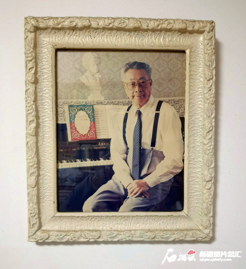 挂在万桐书先生书房的本人留影 石榴云/新疆日报记者 银璐 摄