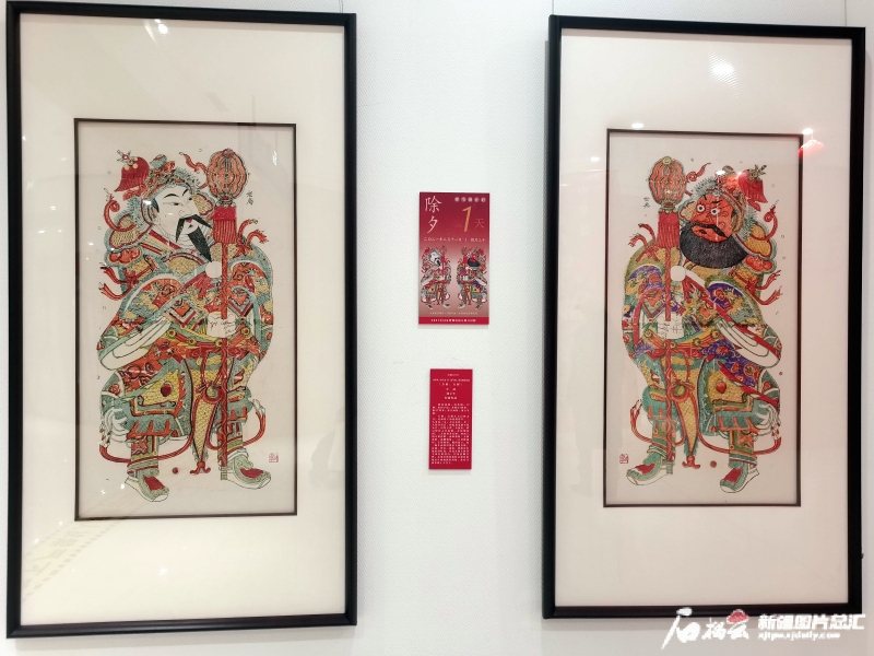 “中华风·乡土情——新疆第三届年画、农民画优秀作品展”上的年画《方相、方弼》。石榴云/新疆日报记者 李莉摄