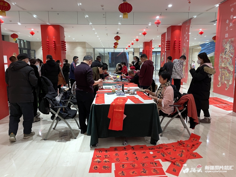 “中华风·乡土情——新疆第三届年画、农民画优秀作品展”特别设置了互动体验区,不定期安排专业老师,指导观众进行剪纸、写春联、年画创作等活动。马琳摄
