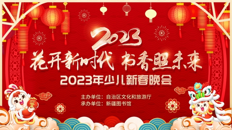 “花开新时代 书香照未来”2023年少儿新春晚会海报。新疆图书馆供图