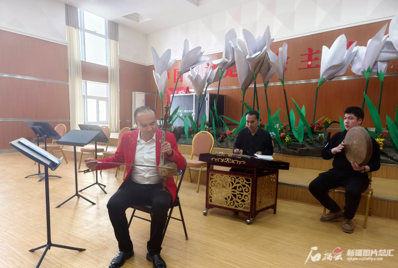 来自麦盖提县刀郎艺术团的艾斯卡尔·江用艾捷克演奏《新疆之春》。石榴云/新疆日报记者王新红摄