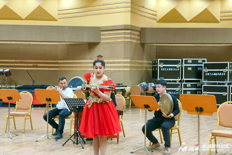 来自阿克苏地区塔里木歌舞团的努尔比耶·艾尔肯用热瓦普弹奏《我的热瓦甫》。石榴云/新疆日报记者王新红摄