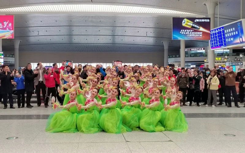 “掀起了你的盖头来/让我来看看你的脸……”4月3日,乌鲁木齐站,一阵音质醇厚的男声响彻候车大厅,让流动的人停下脚步,让等车的人抬头张望,让嬉闹的孩子瞬间安静。首届新疆文化艺术节群众文化活动展演的第三场演出,在乌鲁木齐市文化馆西域男声合唱团的快闪演唱中开启。