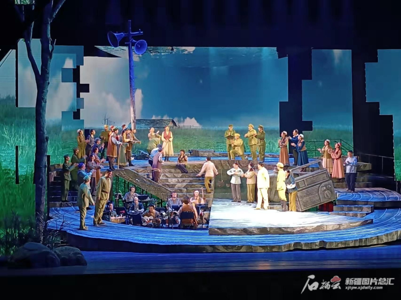 4月6日晚,由新疆艺术剧院歌剧团演出的音乐剧《守界人》在新疆艺术剧院剧场上演。顾芸菲摄