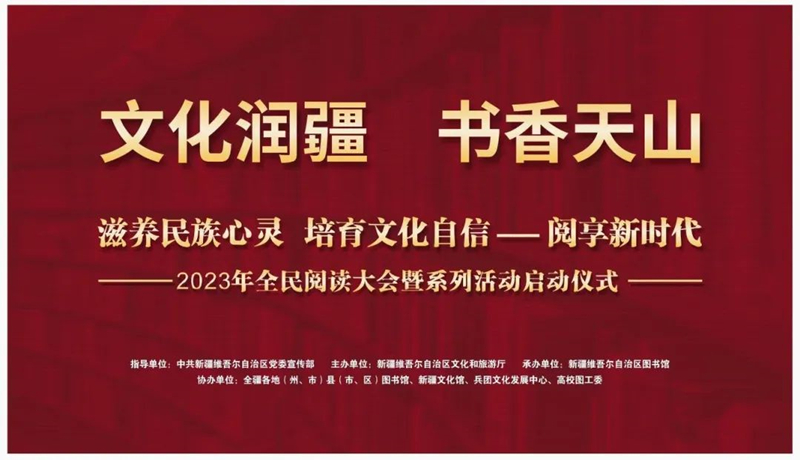 4月23日,“滋养民族心灵 培育文化自信——阅享新时代”书香天山全民阅读大会启动仪式在新疆图书馆举行,该活动以新疆图书馆为主会场,同时在新疆文化馆、新疆师范大学图书馆、伊犁州图书馆等地设立六个分会场,由此拉开2023年全疆各地州市全民阅读活动序幕,共同营造浓厚的全民阅读氛围。