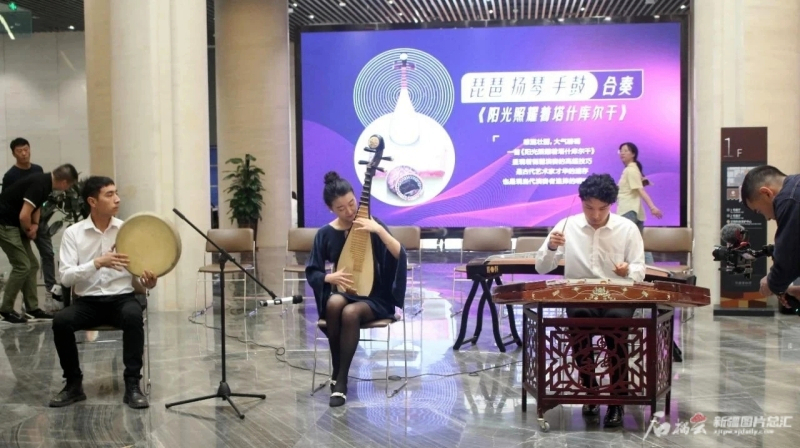 5月14日,一场由新疆日报社、新疆艺术学院、新疆博物馆联合举办的“博物馆里的音乐会”,亮相新疆博物馆一楼大厅。器乐演奏与文物展览的结合,昔日盛景与现代气息的融汇,让“走进博物馆”变得越加有趣有益。