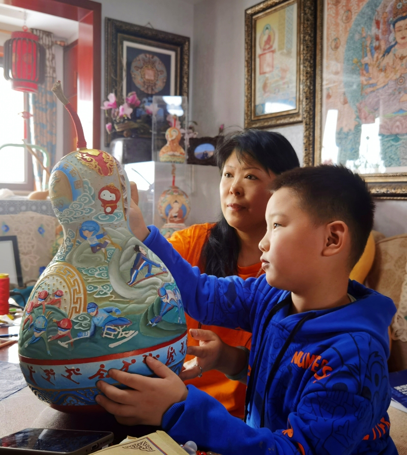 葫芦雕刻非遗传承人马江红(左)教授学生 资料图