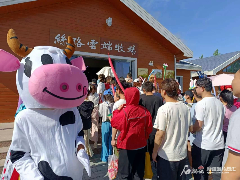 来到这里,游客“可览、可学、可游、可食”。6月18日,新疆天润乳业股份有限公司首个观光牧场——天润丝路云端牧场开园。