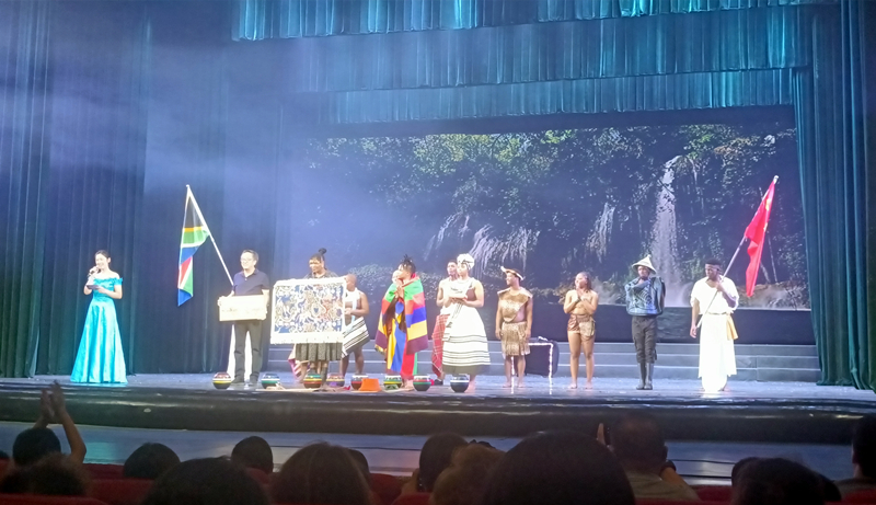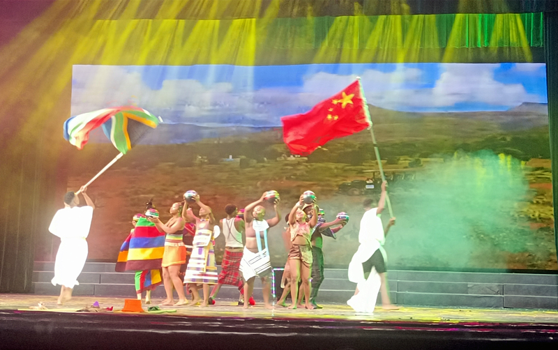 别样的舞蹈,穿越万里的情谊,当中非国旗出现在舞台上时,台下观众响起热烈的掌声,演员们用舞蹈致敬中非友谊长存。