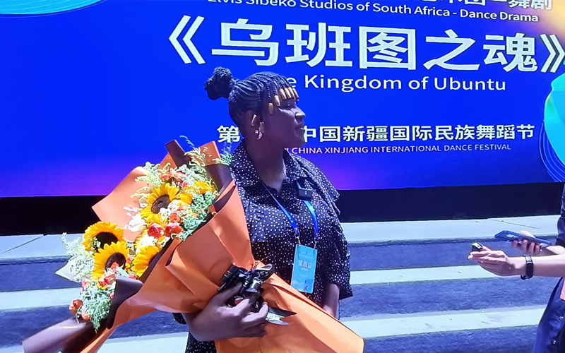 南非埃尔维斯舞蹈艺术团团长诺姆汉达索·姆伦瓦那说:“这是我第一次来新疆,新疆人民的热情好客,让我感觉好像回到了故乡,虽然我们的语言不同,但是通过音乐和舞蹈进行交流,完全没有障碍,我们都非常享受这种歌舞的状态,沉浸其中,为之倾倒。”