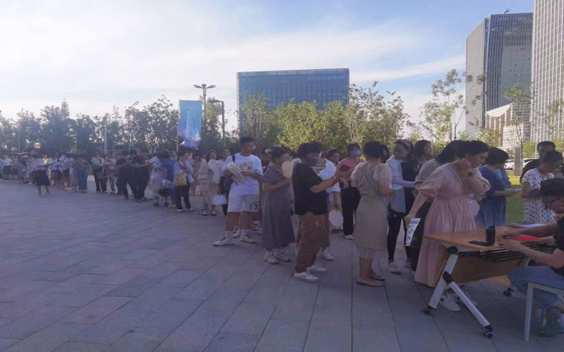 本次演出吸引了许多喜欢中国传统文化、古典名著的观众前来观演,许多年轻人颇有仪式感的穿着传统服饰来赴这场“红楼之约”。不仅如此,剧院一楼大厅里观众排起了长队,他们手里拿着扇子、本子,等着盖上一枚红楼梦的纪念章。