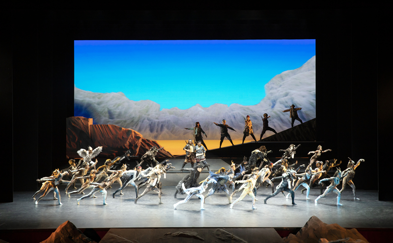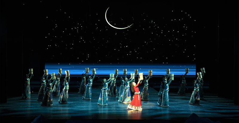 带着青藏高原上“中华水塔”三江源水淘洗出的坚毅和清新,承载着“深耕黄河文化、厚植青海故事”的美好夙愿,7月26日晚,由青海省文化和旅游厅出品,青海省演艺集团创排的原创生态舞剧《大河之源》在新疆艺术剧院木卡姆艺术团剧场上演。