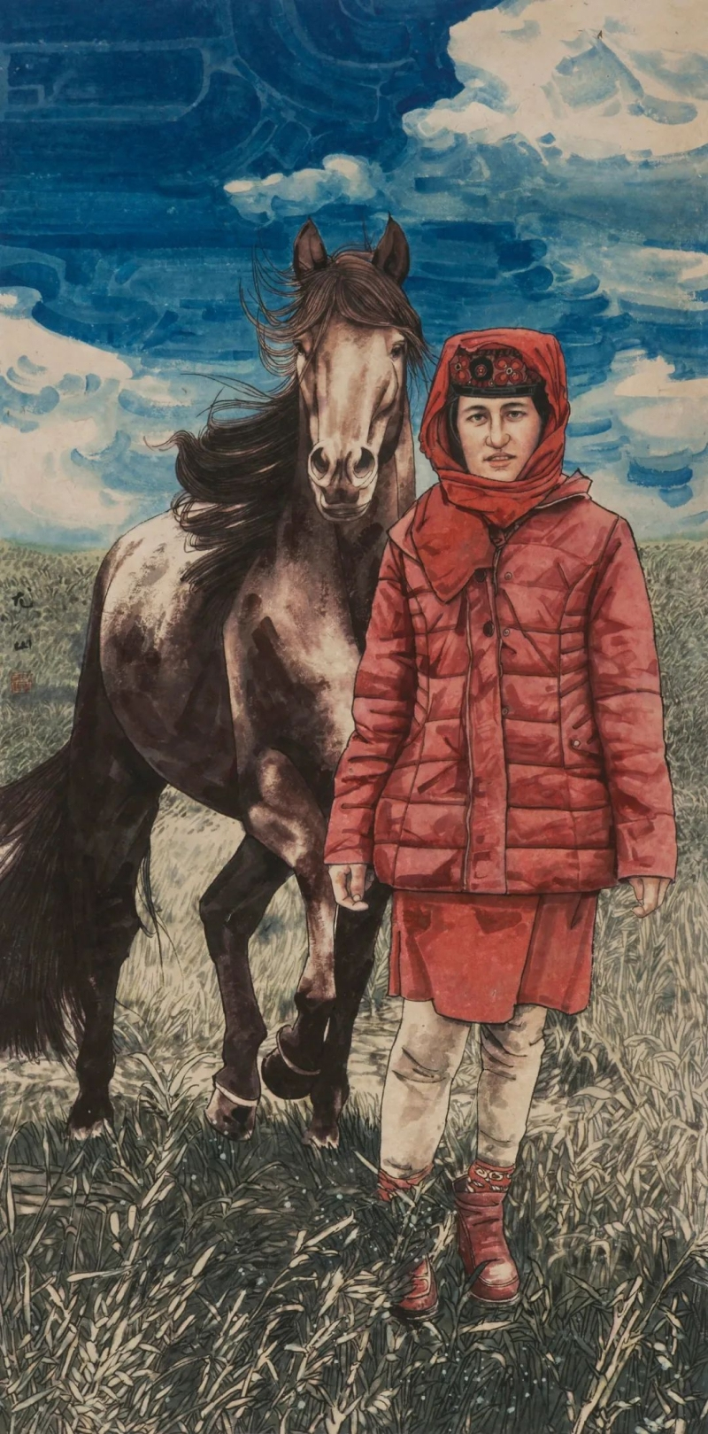 综合材料画《来自北京的信》 亚里昆·哈孜作